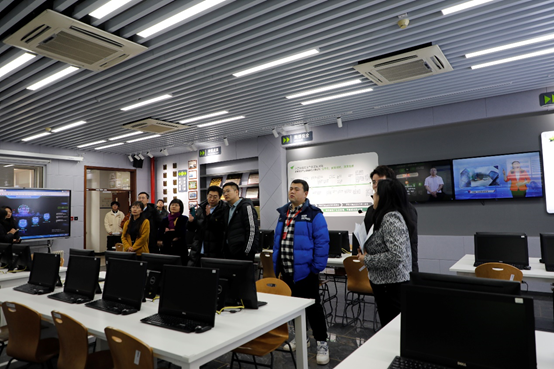 下午,专家组在米新丽副院长、教务处谢利苹处长和信息媒体学院相关人员陪同下参观了智慧司法专业(群)实训基地、计算机应用技术专业实训基地、计算机网络技术专业实训基地,对 SGAVE项目落地的硬件配备和实训室条件进行了全面评估。参观中专家对教师专业而又热情的讲解给予了高度的评价,对实训室环境给予了充分肯定。之后,专家组对信息媒体学院学生代表、教师代表分别访谈,评估当前专业学生整体面貌和专业学习情况以及当前院校教学实施情况,对基于SGAVE内容进行院校学科建设及教学方案进行了充分交流。访谈后专家表示同学们的专业素养、教师们的爱岗敬业给他们留下了深刻的印象,并高度赞誉了学院的办学理念与治学水平。